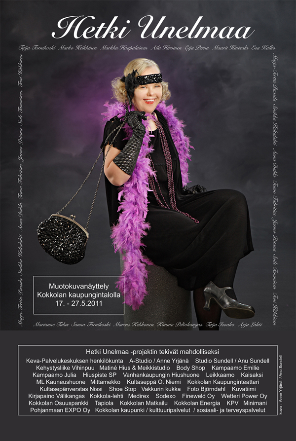 Hetki Unelmaa -projekti oli Anu Sundellin ja minun ensimmäinen suuri yhteisprojekti 2011. Kuvasimme yhdessä 20 malliamme ja koostimme heistä näyttelyn. Hanke sai valtakunnallista jatkoa Suomen Ammattikuvaajien projektina ja näyttelyitä syntyi eri puolille Suomea.